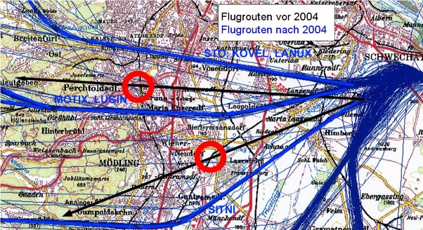 Bis dahin, also vor 2004 gab es von der Piste 29 eine Abflugspur über Perchtoldsdorf und eine im Bereich Guntramsdorf weiter südlich.